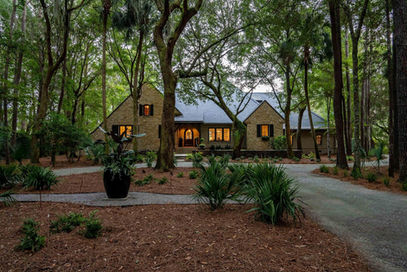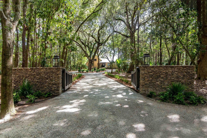 As you drive into the property, you are greeted by grand live oak trees, native azaleas, crepe myrtles and palmetto trees. Your spirit lifts as you approach the gated arch stone entryway.
