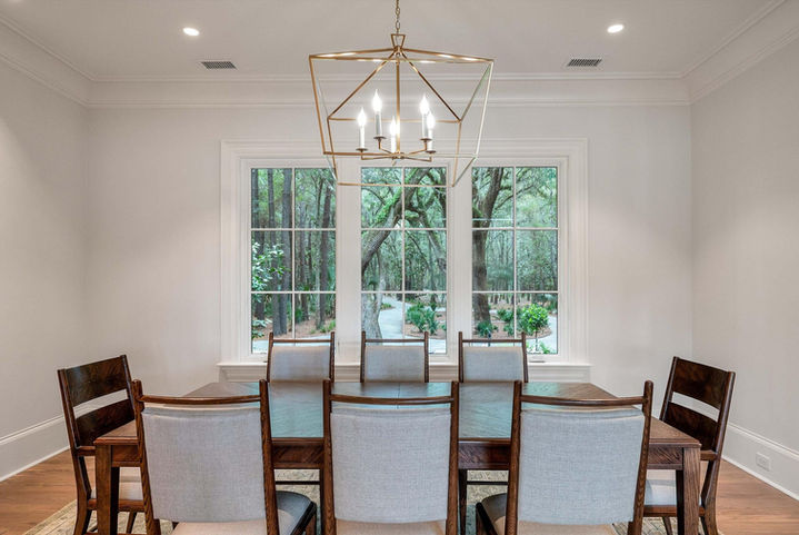 4265 Wild Turkey Way's outdoor living space epitomizes Lowcountry sophistication. The home's southern orientation offers the warmth of the winter sun and welcomed shade in the summer. The southerly exposure ensures full sun on the pool deck and warm sea breezes. Two outdoor porches frame each end of the lakefront residence. A covered loggia just off the living room is centered between the two porches.